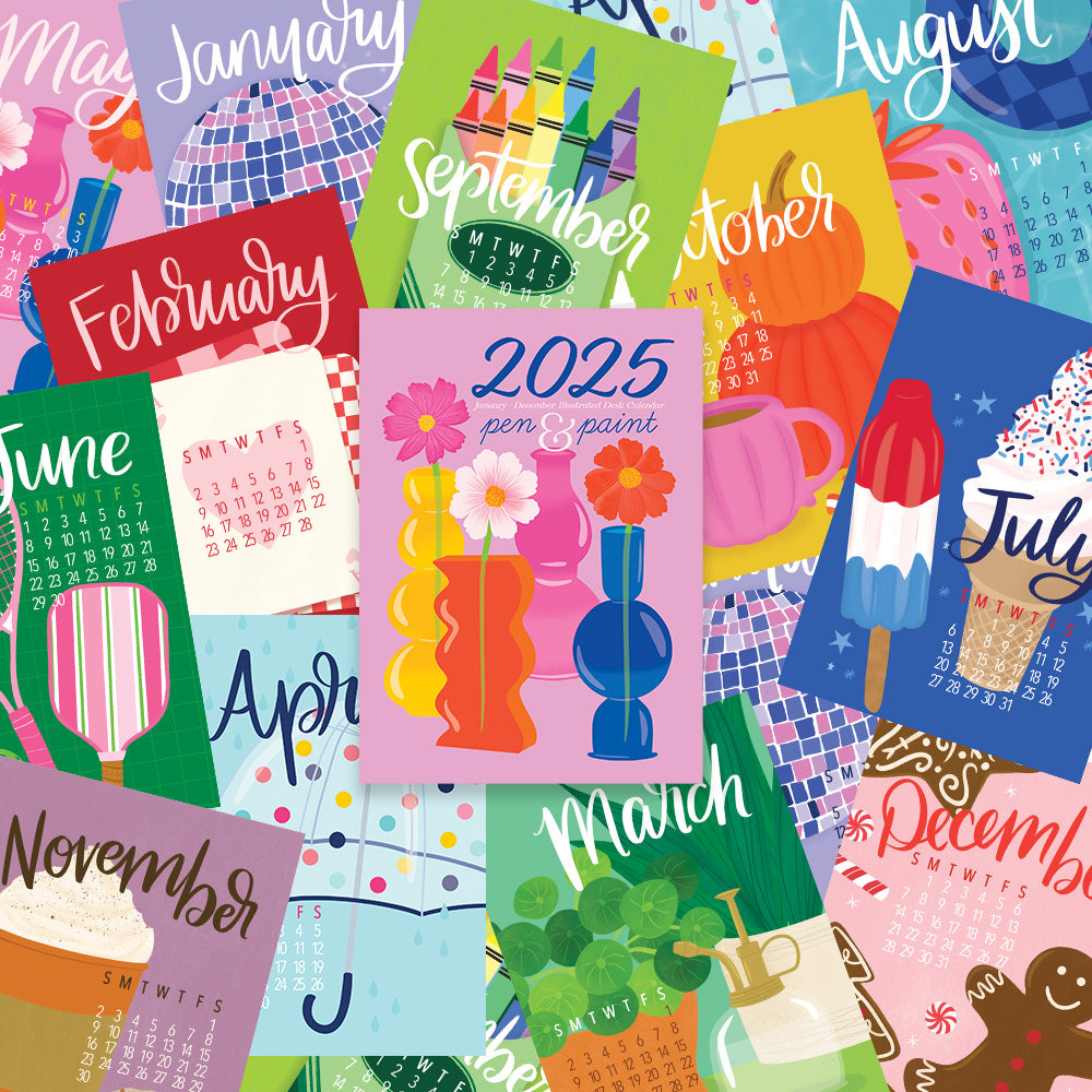 2025 DOUBLE SIDED Refill Pen & Paint Illustrated Calendar